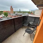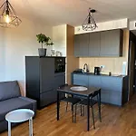 Set around 10 minutes' drive from Grunwald Bridge, the 24 m^2 Brzoskwiniowe Zacisze Apartment Wroclaw comprises a balcony and a seating area overlooking the city. The apartment features Wi-Fi throughout the property.